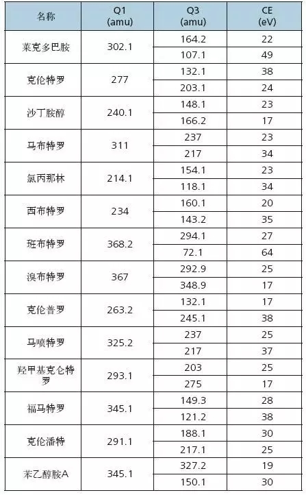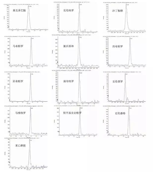 β-受體激動劑主要用于治療人、畜支氣管哮喘和支氣管痙攣。在用于畜牧飼喂時被非法用于促進動物生長,減少脂肪沉積,提高瘦肉率的作用。人類長期食用含β-受體激動劑殘留的食物可能會引起中毒,并對健康造成極大的傷害。目前,我國禁止在使用動物的飼養(yǎng)中使用。由農(nóng)業(yè)部發(fā)布的國家標(biāo)準(zhǔn)《豬尿中β-受體激動劑多殘留檢測液相色譜-串聯(lián)質(zhì)譜法(農(nóng)業(yè)部1025號公告-11-2008)》和農(nóng)業(yè)行業(yè)標(biāo)準(zhǔn)《動物尿液中11中β-受體激動劑的檢測(農(nóng)業(yè)部1063號公告-3-2008)》,對動物尿液中β-受體激動劑液相色譜-質(zhì)譜/質(zhì)譜測定方法進行了規(guī)定。