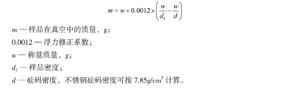 在一些需要準(zhǔn)確稱量標(biāo)準(zhǔn)物質(zhì)的場合,如證書中特別聲明了需采用浮力校正公式來計算樣品的質(zhì)量,可采用下式: