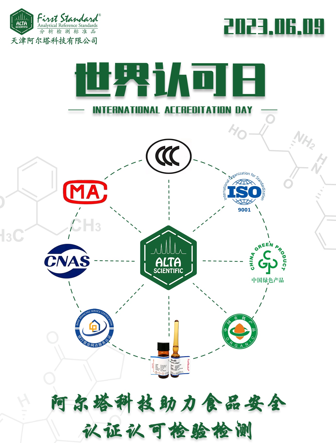 今年的6月9日是第十六個(gè)“世界認(rèn)可日”,阿爾塔科技上新氯化石蠟檢測標(biāo)準(zhǔn)品,助力食品安全認(rèn)證認(rèn)可檢驗(yàn)檢測。
