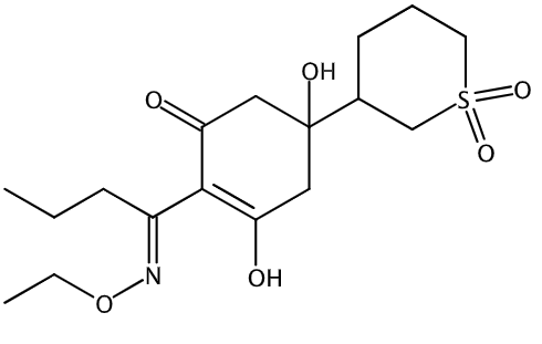 2-[1-(ethoxyimino)butyl]-3,5-dihydroxy-5-(3-thianyl)-2-cyclohexen-1-one S-dioxide; 2-Cyclohexen-1-one; 2-[1-(ethoxyimino)butyl]-3,5-dihydroxy-5-(tetrahydro-2H-thiopyran-3-yl)-; S,S-dioxide; 2H-Thiopyran; 2-cyclohexen-1-one deriv.