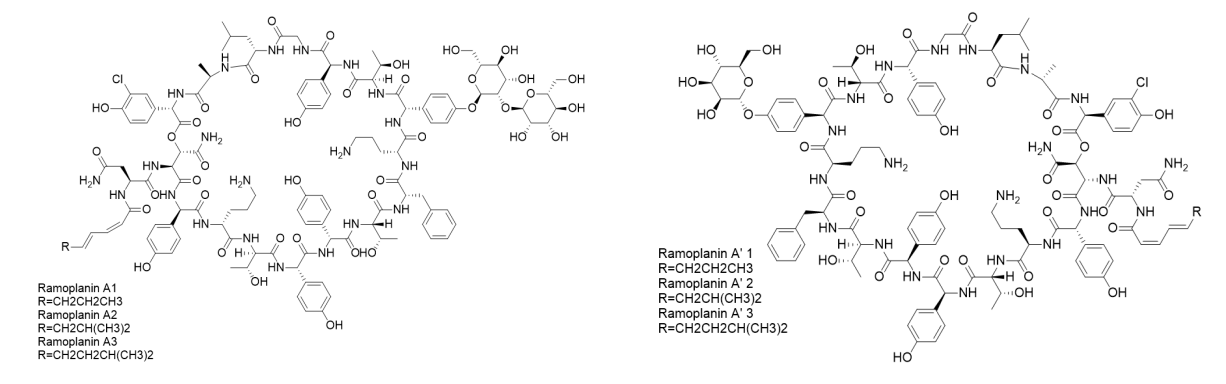 Ramoplanin is a complex antibiotic consisting of a main component designated as ramoplanin A2 and a small amount of related substances, ramoplanin A1, A’1, A’2, A3, and A’3.