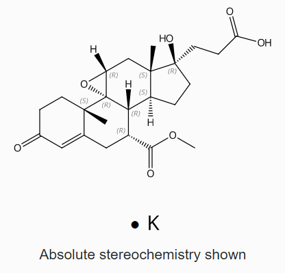 Pregn-4-ene-7,21-dicarboxylic acid, 9,11-epoxy-17-hydroxy-3-oxo-, 7-methyl ester, potassium salt (1:1), (7α,11α,17α)-; Pregn-4-ene-7,21-dicarboxylic acid, 9,11-epoxy-17-hydroxy-3-oxo-, 7-methyl ester, monopotassium salt, (7α,11α,17α)-; SC 70303