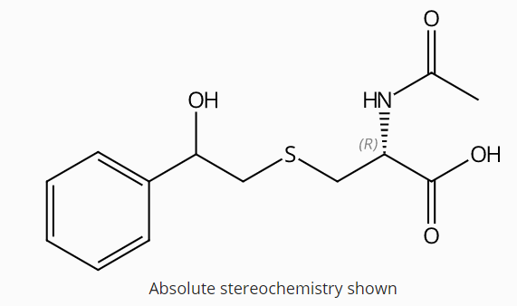 L-Cysteine, N-acetyl-S-(2-hydroxy-2-phenylethyl)-; N-Acetyl-S-(β-hydroxyphenethyl)-L-cysteine; Alanine, N-acetyl-3-[(β-hydroxyphenethyl)thio]-, L-